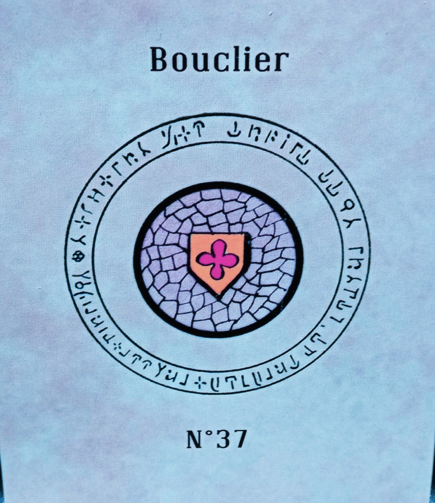 Nous sommes arrivés dans un monde ancien, dont les menhirs sont la porte d’entrée. L’atmosphère est un peu électrique, comme orageuse. Merlin semble chercher quelque chose sur une pierre plate. Tout à coup il pose sa main dessus et un dessin étrange apparait, les lignes sont formées par des traits de lumières bleu vif. La forme qui s’est dessinée sous la main de Merlin est un bouclier. Je ne peux pas m’empêcher de chantonner: « Aaaah….Esteban, Zia, Tao les cités d’Oooor » mais le mage me fait taire assez vite, d’un regard glacé et désapprobateur. C’est pas le moment de rigoler on dirait!