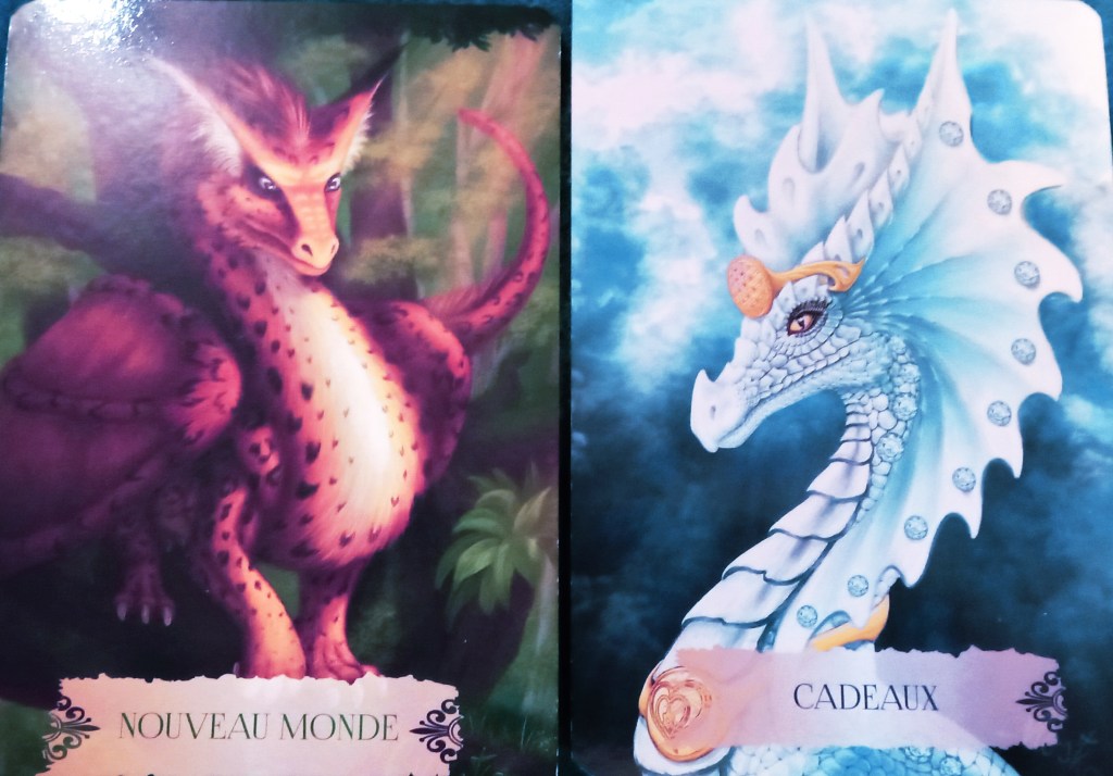 Le deuxième dragon est blanc, étincelant, il a une aura et une énergie incroyable. Sa voix puissante résonne dans ma tête. Il nous demande de quitter les énergies de manques, d’insatisfaction, de sentiment d’échecs et de remercier au contraire tout ce que la vie a mis sur notre chemin. Remercions autant les bonnes choses que les moins bonnes, car tout arrive dans un but précis. Je crois que c’est Eckart Tolle qui a dit un jour que notre plus grande erreur est de penser que nous sommes sur terre pour être heureux. Nous ne sommes pas là pour ça..pas du tout!! Une fois que nous avons compris et intégré cela, c’est beaucoup plus simple. On ne se culpabilise plus de ne pas parvenir au « Bonheur » et on se laisse beaucoup moins duper par ceux qui nous promettent d’être heureux pour toujours par des moyens faciles ou artificiels…Nous somme là pour expérimenter, nous mettre au défi, apprendre à accepter les moments de joie comme les moments de détresse. Le dragon blanc nous demande de pratiquer tous les jours des exercices de gratitudes, envers ceux et ce que vous voulez. Remercions-nous, nous même, pour tout ce que nous avons accompli et surtout si c’était difficile.