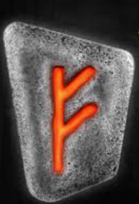 Pour savoir à quel niveau j’ai tiré une rune… c’est la rune Fehu qui s’est présenté. Cette rune est associée au matériel, aux possessions, aux finances. Il est possible qu’elle nous parle ici de pertes. Sa couleur est le rouge, ce qui pourrait être relié à une certaine carte du tirage que vous verrez un peu plus loin .