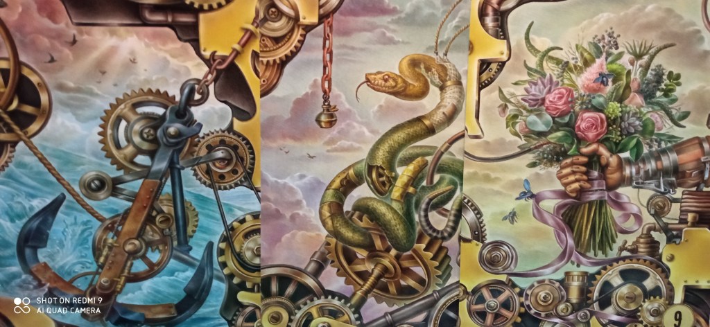 Pour le tirage de la semaine prochaine j’ai un peu changé les habitudes. J’ai pris le petit oracle des meufs décomplexées, le Steam punk Lenormand et le tarot grand luxe. J’ai fait une première partie sur le plan personnel et une deuxième partie, sur le plan mondial. Ça résonnait tellement fort que je n’ai pas pu faire autrement. C’est très chouette… très très chouette. Enfin de mon point de vue… chacun voit midi à sa porte et si je suis trop idéaliste ou utopiste pour certains c’est pas bien grave. L’avenir nous départagera.