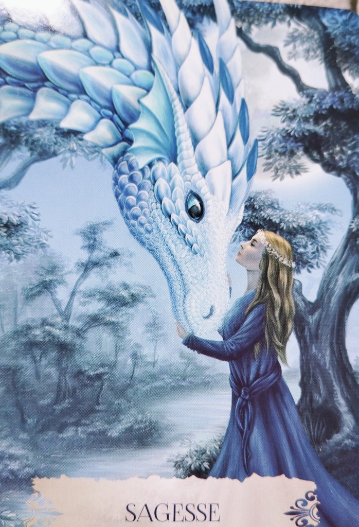 Ah non…ils ont l’air paisible et confiants nos dragons. Le dragon de la lune argenté, le dragon de la sagesse. Curieux… le 8 avril c’est la nouvelle lune, assortie d’une éclipse totale de soleil visible des États-Unis, du Québec et de je ne sais pas trop où encore…