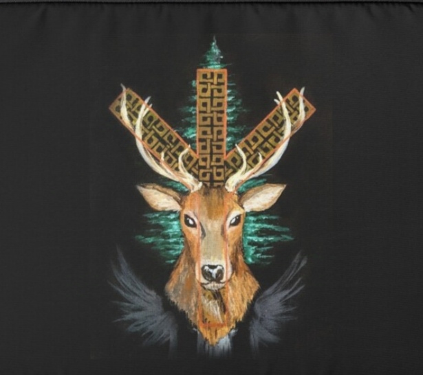 Alors là!! La boucle est bouclée… nous avons commencé ce calendrier avec Merlin transformé en cerf et nous finissons avec la rune n°15 Elhaz, la rune du dieu cerf Cernunos. Elle est fortement relié à Raido pour l’effet troupeau, horde, énergie vitale, sexualité, combat, cycles naturels…on va de l’avant ça c’est sûr. Nous sommes poussé à avancer quoi qu’il arrive. Souvenez-vous en prime du buffle d’hier…ça fait beaucoup de grosses bêtes d’un coup là! Attention à ne pas nous faire piétiner, encorner, écrabouiller! Ça décoiffe presque autant que le vol de notre oiseau Rokh! Il va falloir être vraiment, vraiment très ancré dans les mois à venir. Cette rune est la plus puissante protection autant physique que psychologique de tout le Futhark. Associée à la pierre que le dragon Odin m’a donné qui remplit les mêmes fonctions, sans compter la protection de Marie avant notre départ, l’ange SEHEIAH… Protection par ci, protection par là, ça commence à faire beaucoup de protections tout ça, sans doute à la hauteur des défis qui nous attendent. Quand je pense que je m’attendais à un truc léger cette année! Pas du tout! Nous voilà partis en transhumance, en croisade, en…en… migration!! C’est le mot que je cherchais! En tout cas ce qui est sûr c’est que nous allons nous retrouver embarqué dans un mouvement qui nous entraîne malgré nous… avec tous les dangers que cela comporte sur le chemin. Prédations, embuscades, traversée de rivières en furie, crocodiles, lions, quête d’eau et de nourriture, météo capricieuse etc. Beaucoup de mouvements et de déplacements de populations en vue cette année.