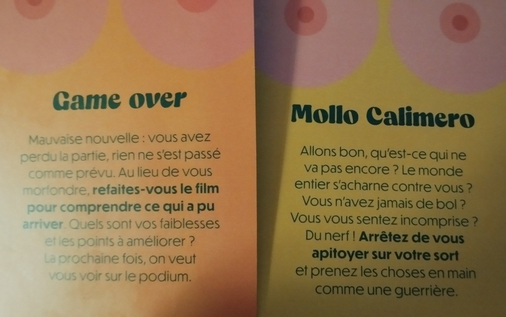 J’ai commencé par l’oracle des meufs décomplexées qui nous dit qu’on s’est planté, mais que l’on doit repartir et arrêter de jouer les Calimero.