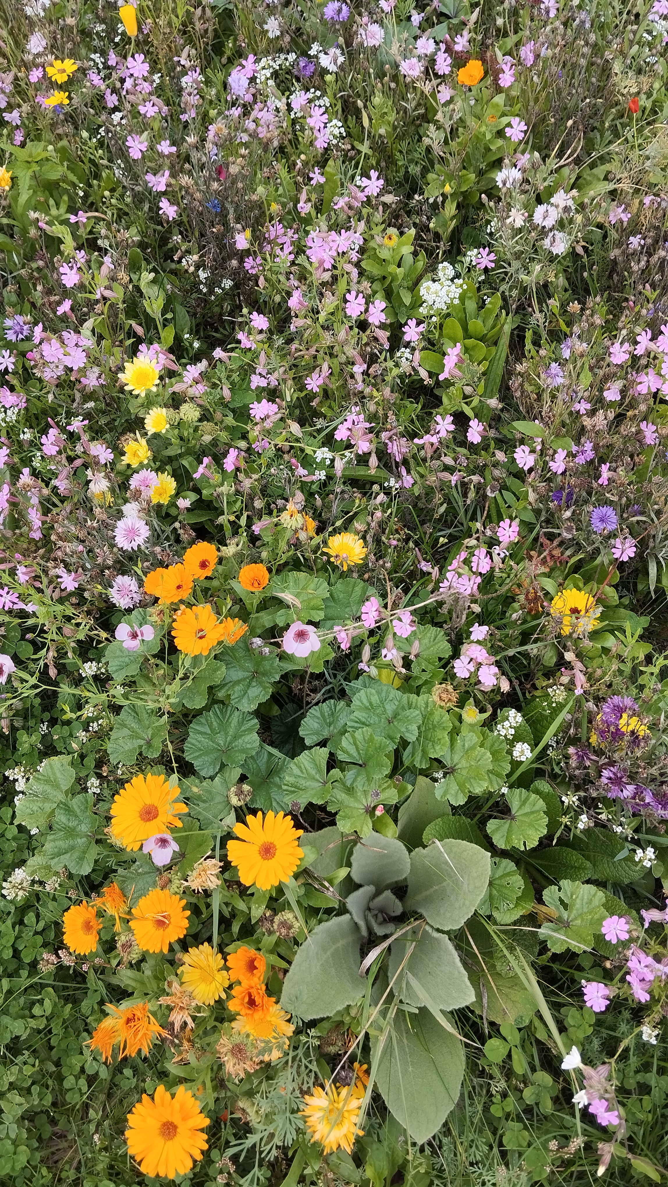 Par contre, une fois dehors, c’était plutôt magique. Des parterres de fleurs multicolores ont été aménagés derrière le château. Des fleurs toutes simples, des vivaces mais Waouh! Petites fleurs pour grands effets! Et particulièrement cette fleur orange… J’ai senti que cette couleur entrait jusque dans ma moelle épinière. Elle m’a donné un sacré coup de boost. Je n’arrivais plus à partir tellement elle m’a fait du bien cette petite fleur. Je pense que je vais me chercher des vêtements de couleur orange, des couleurs un peu vives et chaude. Vivement qu’on rallume le poêle que je retrouve les flammes. Ça ne devrait plus tarder maintenant vu le temps.