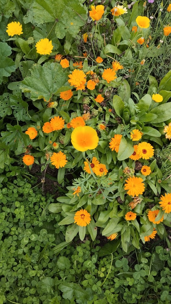 Il y avait plein de fleurs de toutes les couleurs mais ce sont vraiment les oranges qui m’ont redonné de l’énergie et je les remercie beaucoup d’ailleurs. Je vais peut être passer prendre un bouquet chez la fleuriste d’ailleurs… c’est une idée ça. Un peu de soleil en pétales.